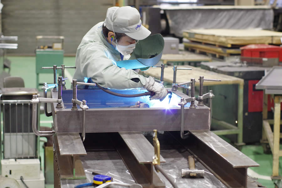板金加工→塗装→組立の一貫製造システムは、製品に人間性を期待する企業姿勢の現われです。